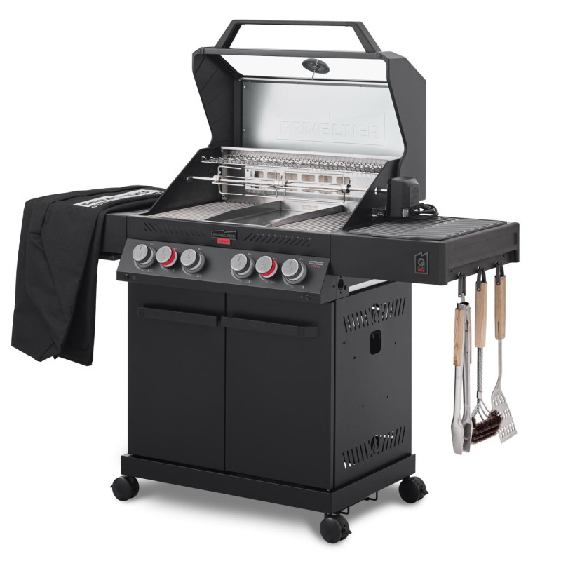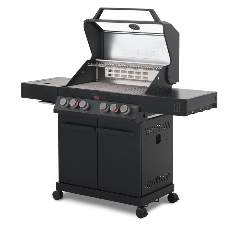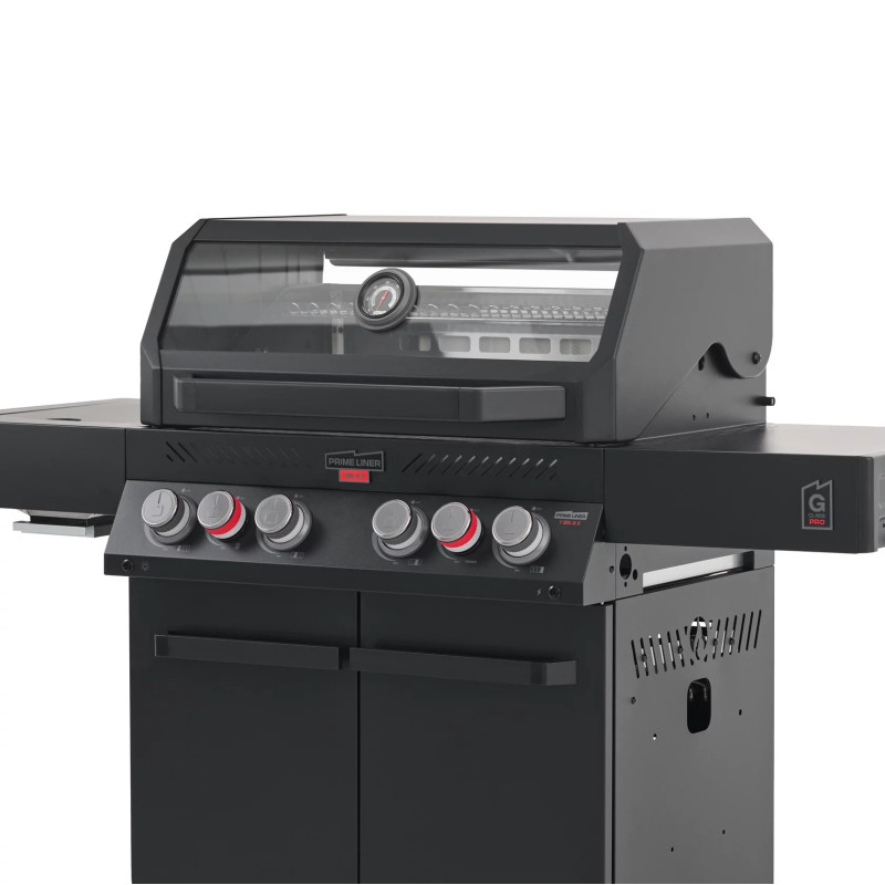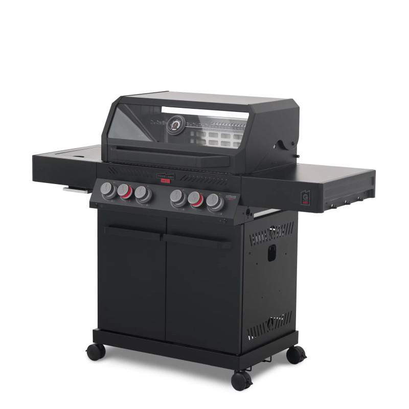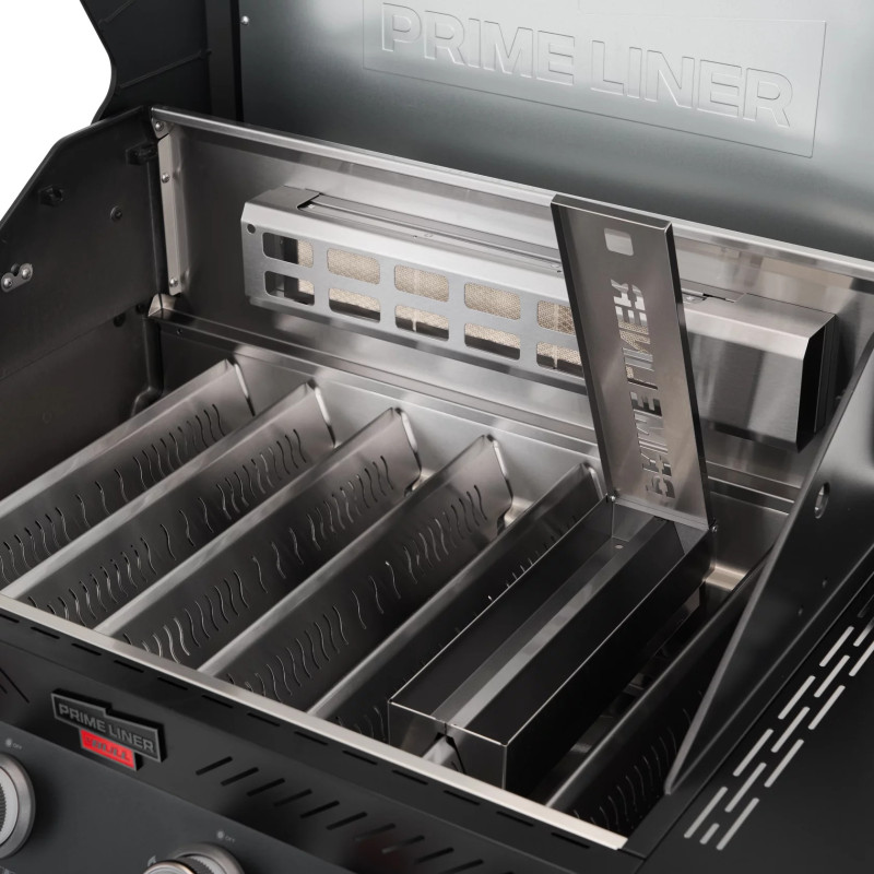 Гриль обладает выдающейся мощностью — 4 основные турбогорелки Blade, увеличенная боковая инфракрасная горелка BROIL ZONE+ и задняя инфракрасная горелка.