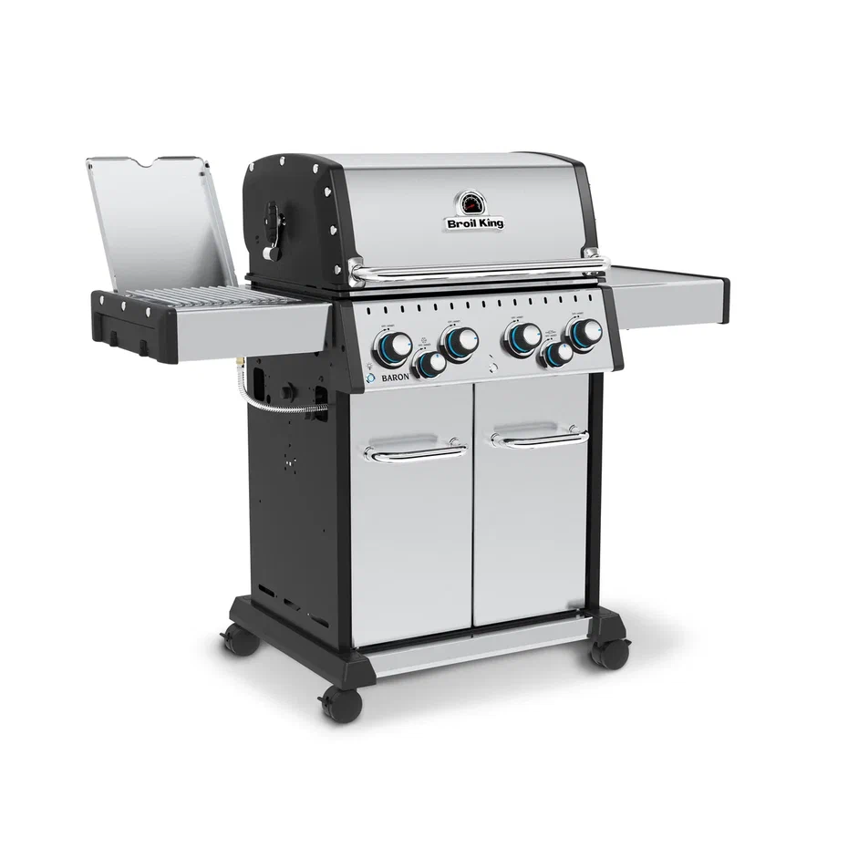 Broil King BARON S 490 IR — это мощный и надежный газовый гриль из серии "Baron", предназначенный для тех, кто ценит качество, функциональность и современный дизайн. Этот гриль отлично подходит для семейных мероприятий и любителей готовить на свежем воздухе благодаря своей высокой мощности и продвинутым технологиям. Наличие инфракрасной горелки делает его особенно привлекательным для быстрого и равномерного запекания мяса и стейков, сохраняя их сочными.